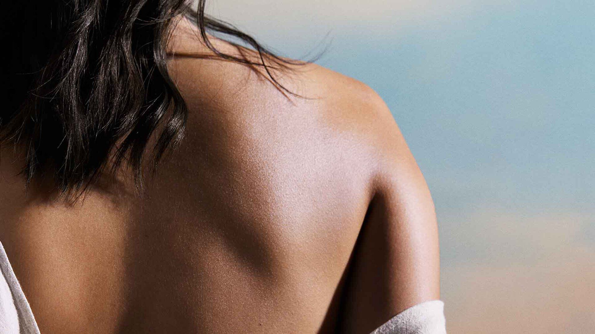 Placez la partie inférieure de votre paume sur votre menton et tirez-la avec une légère pression le long du contour de votre visage, en direction de votre oreille. Répétez le mouvement de l’autre côté de votre visage. Cette technique fonctionne particulièrement bien avec une pierre gua sha, car la petite pierre s’adapte merveilleusement bien aux contours de votre visage.Mouvement de massage n°6 : Pour réduire les rides sur le cou et le décolleté :